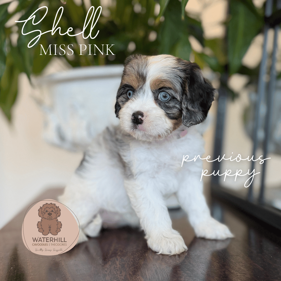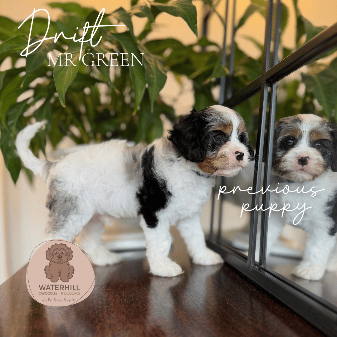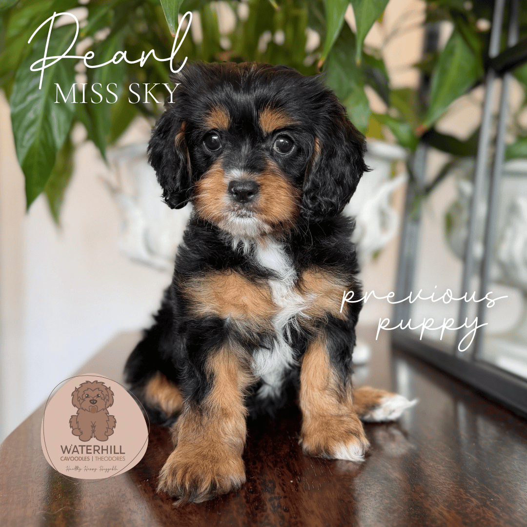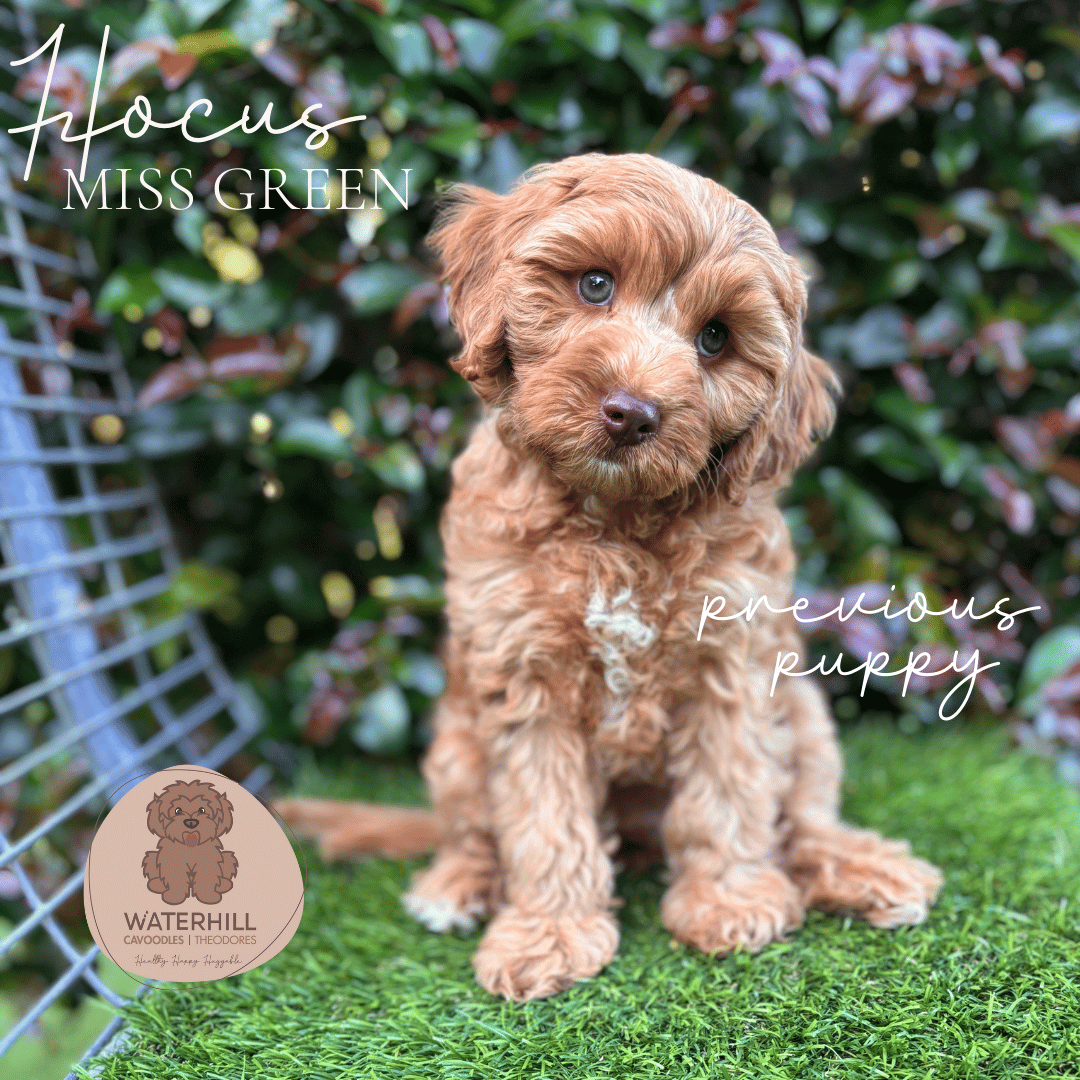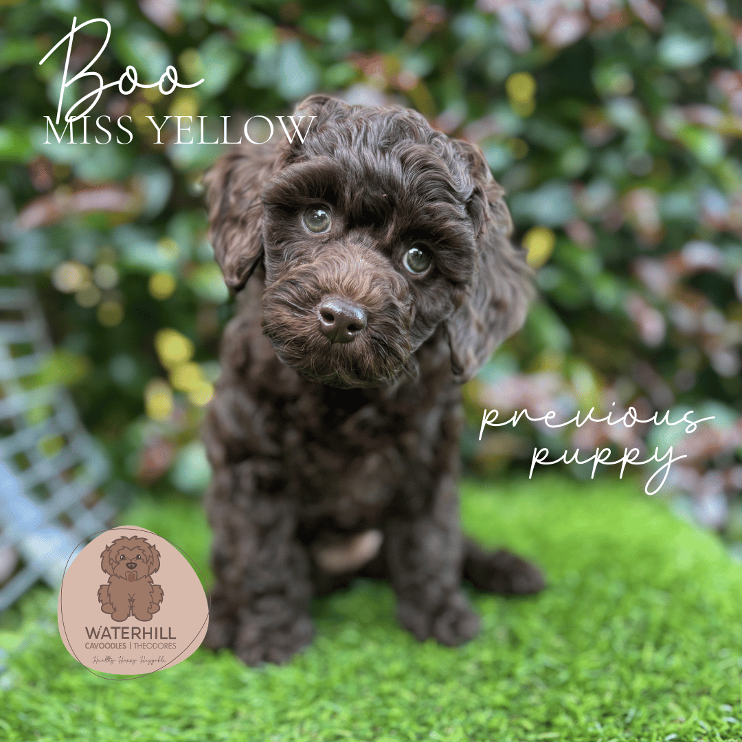 Waterhill Marilyn Monroe, affectionately known as Mintie, is the epitome of sweetness and serenity. From the very beginning she’s carried an old-soul calmness — gentle, affectionate, and wonderfully grounded. The daughter of our beautiful Brigette and granddaughter of the ever-handsome Redford, Mintie proudly represents three generations of Waterhill breeding. Her soft nature and classic cavoodle elegance make her an absolute delight.