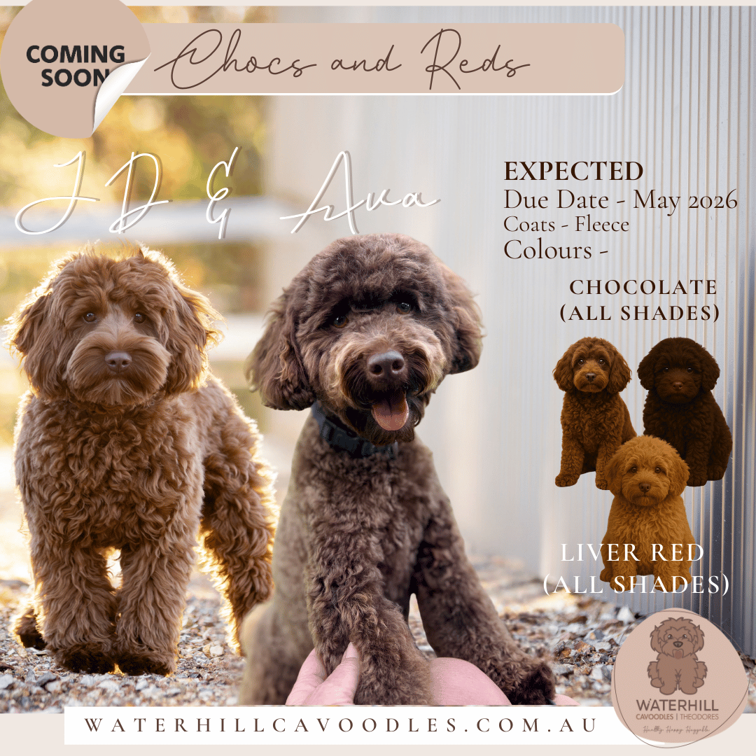We’re excited to share plans for a beautiful future litter from our playful girl Waterhill Ava Gardener and our affectionate boy James Dean (JD).Ava brings her rich chocolate coat, bright intelligence, and fun-loving spirit, while JD contributes his gentle nature and famously cuddly Waterhill temperament. Together we expect puppies with gorgeous coats, affectionate personalities, and that wonderful people-focused nature we love so much.These puppies will be raised here at Waterhill Farm with the same care, structure, and early enrichment our families know and trust.More updates coming soon — we can’t wait to watch this special pairing come to life.
