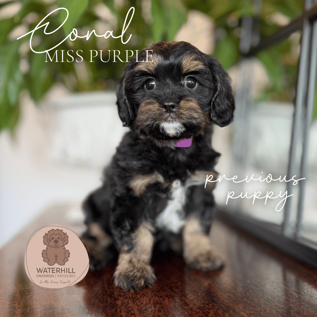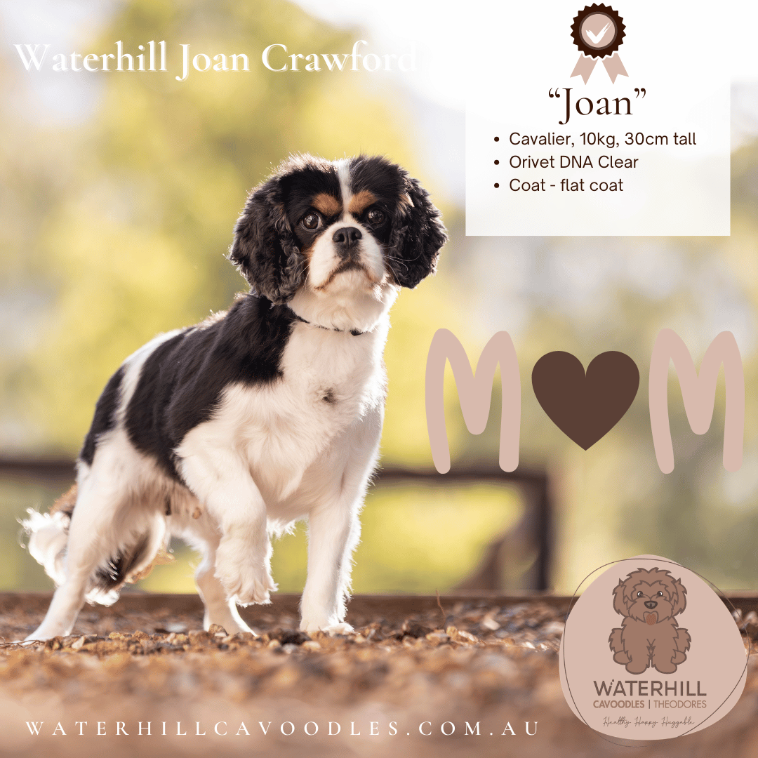 Sweet, spirited, and full of sparkle — Cherry is everything we adore in a cavoodle mum. The daughter of our beautiful Brigette and sister to Mintie, Cherry proudly carries the legacy of three generations of Waterhill breeding.